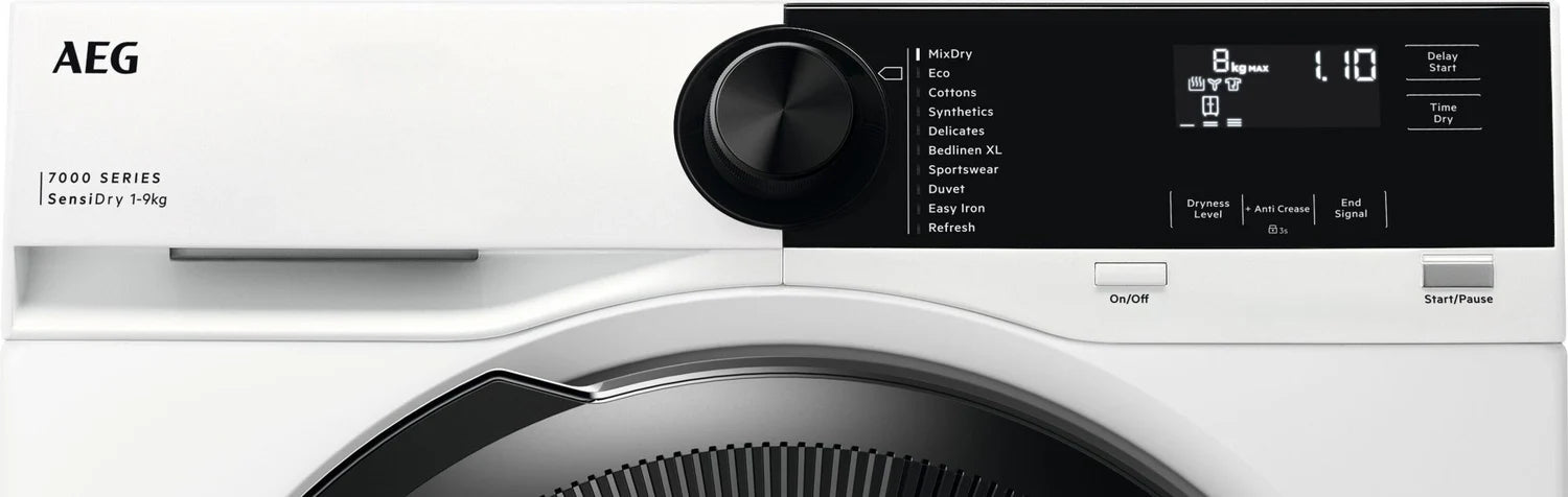 Designed for modern laundry routines, this AEG dryer offers a range of programmes to suit different fabrics and drying needs, from everyday cottons to more delicate items that benefit from gentler care. The larger drum helps clothes tumble more freely for more even drying and fewer creases, while the clear controls make it easy to choose the right setting without fuss. It’s a great option if you want a premium dryer that’s kinder to clothes, efficient to run, and dependable for day-to-day family use.
