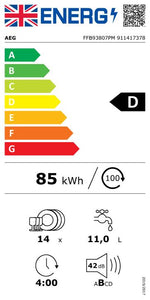 The AEG FFB93807PM Full Size Freestanding Dishwasher has 14 place setting with nine programmes to choose as well as SatelliteClean the innovative spray arm that guarantees corner-to-corner cleaning, with up to 3x better spray coverage providing stunning results across every surface.