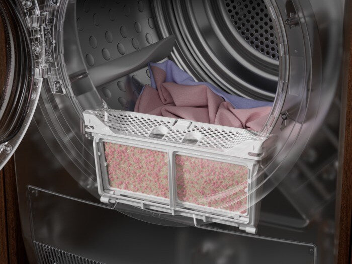 The AEG TR718L4B Heat Pump Tumble Dryer offers an 8kg dry load and uses heat pump technology to dry clothes evenly, at low temperatures, without extending the drying time. The Gentle drying ensures items are never subjected to unnecessary heat, so your clothes last longer and dry mixed loads with MixDry effortlessly and thoroughly without damaging by overdrying or underdrying.