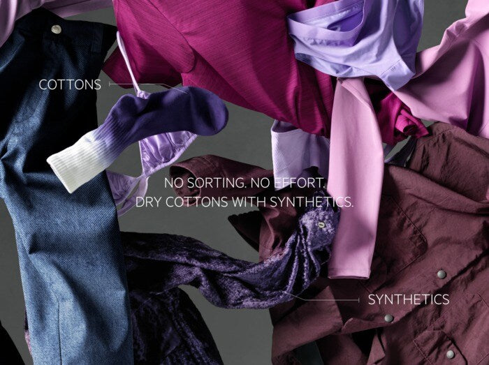 MixDry effortlessly and thoroughly gets synthetic and cotton garments evenly dried without overdrying or underdrying. No sorting needed. The heat-pump technology ensures items get the exact amount of heat, keeping energy consumption low.