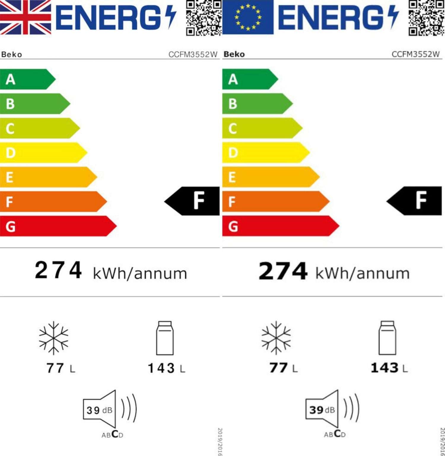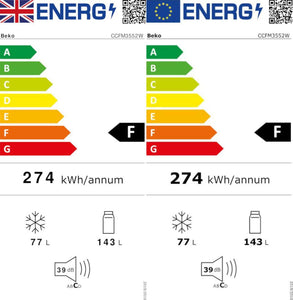 The Beko CCFM4552W Freestanding Fridge Freezer in white is a small frost free fridge freezer which is perfect for smaller households or kitchens. With a combined net capacity of 213 litres there is plenty of space for all your groceries and for added convenience the frost free feature will automatically defrost the freezer, meaning the end of manually defrosting your freezer. This appliance also comes with a freezer guard meaning it can be used in a garage or shed as it can withstand colder temperatures.