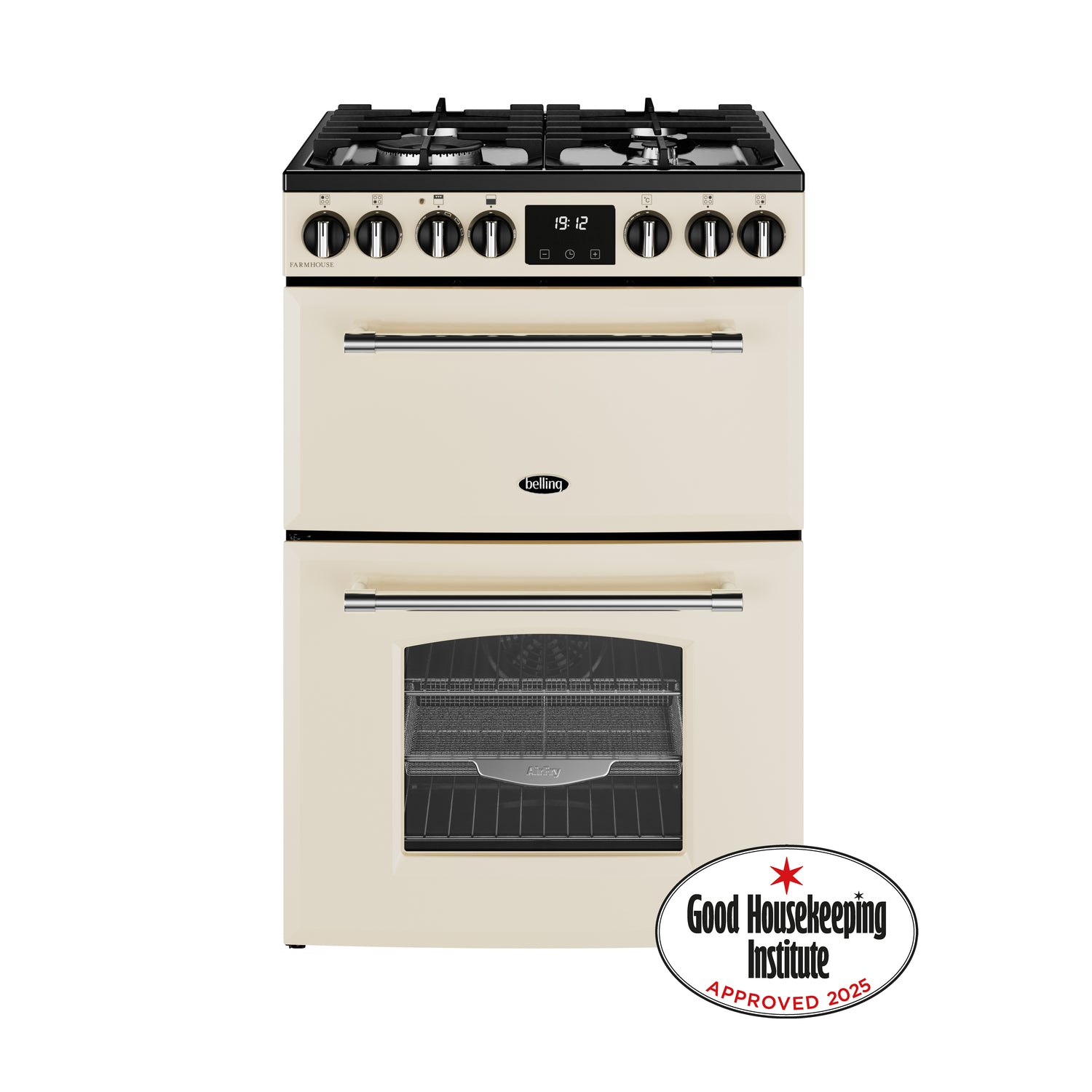 Enjoy the classic Farmhouse-style range cooker, without needing a Farmhouse-sized space. Crafted to fit seamlessly into your lifestyle and your kitchen, this mini Belling range cooker packs everything you need into a compact 60cm model – including two ovens with a range of clever functions including AirFry, a variable electric grill with a full width pan, 4 burner gas hob with a 4K wok burner, plus Easy-Clean enamel to take the elbow grease out of cleaning.