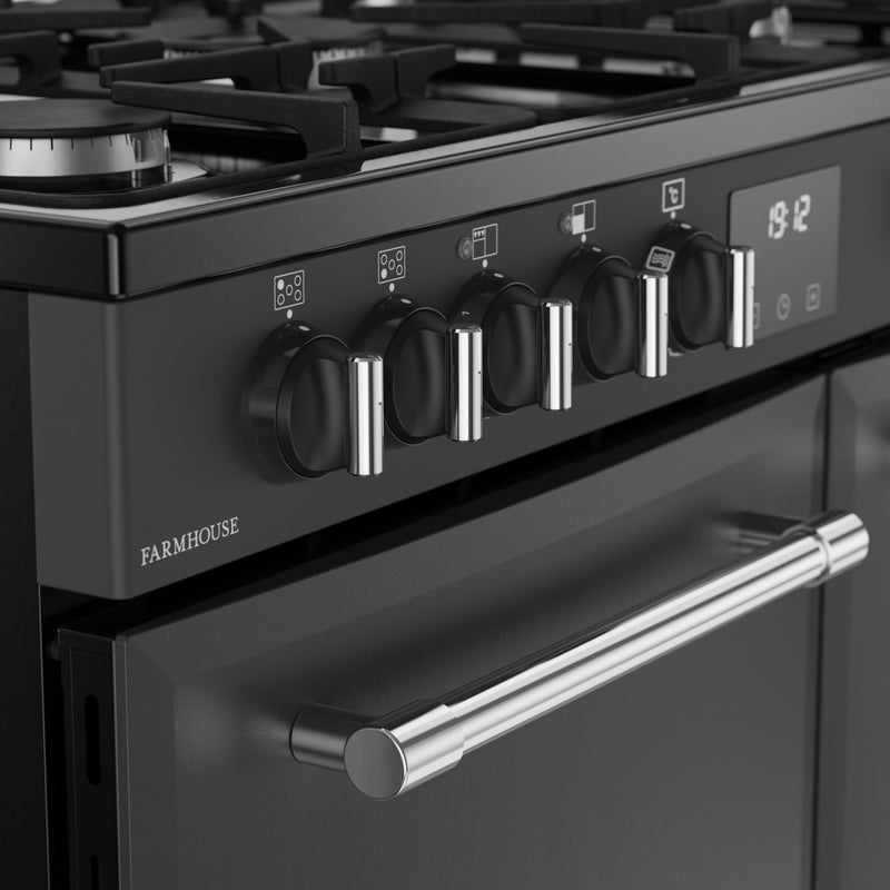At 90cm wide, this is a smaller Farmhouse model for more compact kitchens. Underneath its traditional finish, there’s 174 litres of cooking capacity and a host of features designed to make cooking simple.