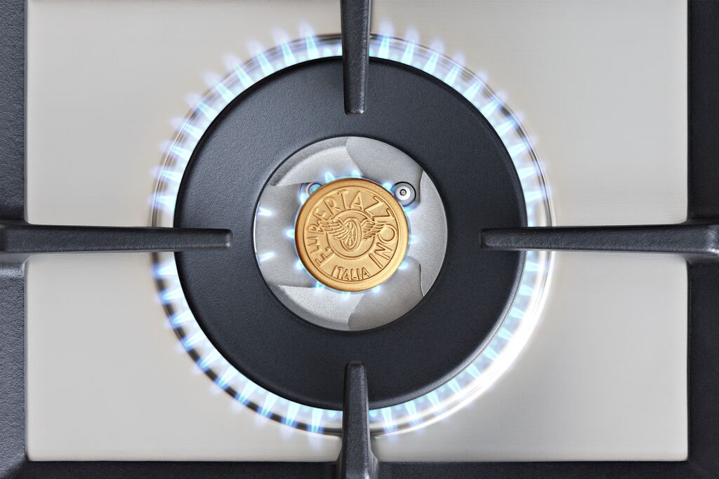 The Hob has six versatile gas burners in brass including two dual-ring power burners.