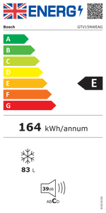 The Bosch GTV15NWEAG Freestanding Under Counter Freezer can help you store plenty of your frozen favourities and save on space too being designed to fit beneath your kitchen counter. The 83 litre capacity is spead over three transparent drawers giving you plenty of space for everything from frozen vegetables and fish.