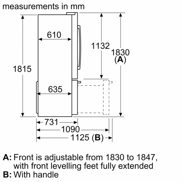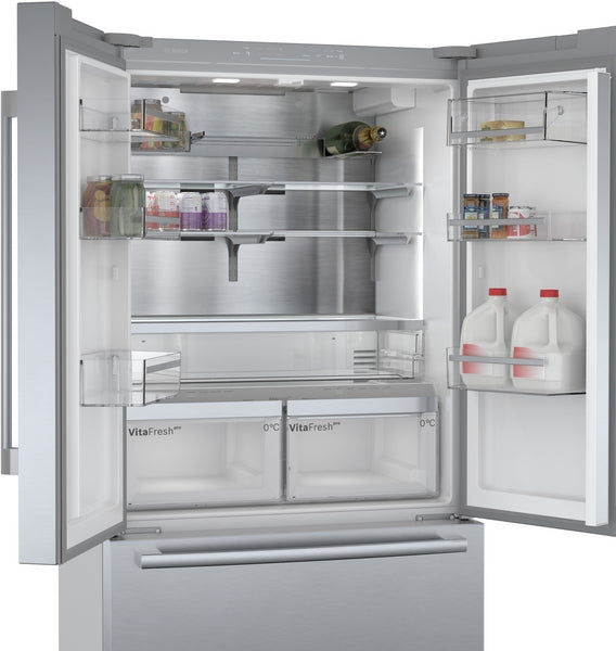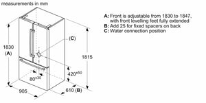 The Bosch KFF96PIEP American Fridge Freezer comes with XXL capacity thanks to the multi door refrigerator which also a plumbed in ice & water dispenser so a refreshing glass of water is always to hand.