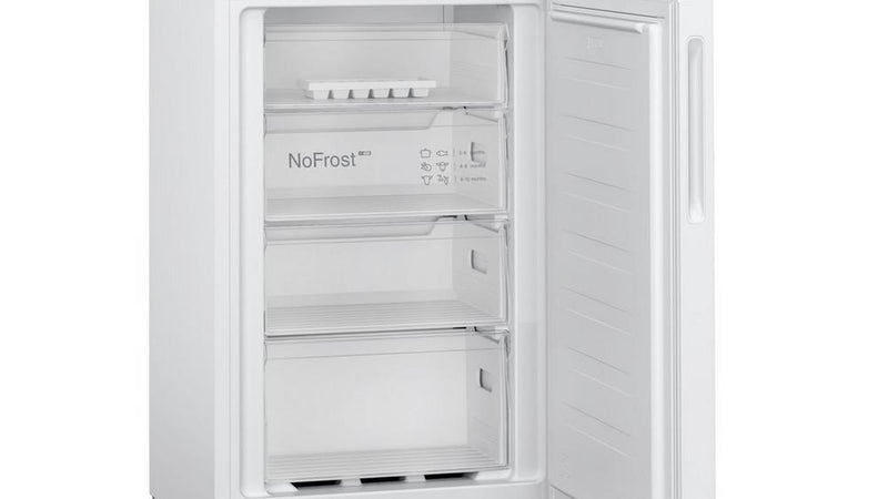 The Bosch KGN27NWEAG Freestanding Fridge Freezer in white is just 55cm wide so will look great in any kitchen and with an overall capacity of 255 litres there is plenty of storage for all your shopping.