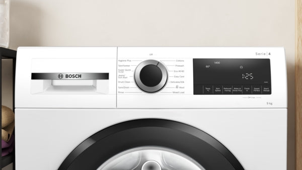 This high-performance washing machine from Bosch, with a 9kg capacity and 1400rpm spin speed, is designed for efficient and thorough cleaning. Its sleek white design adds a touch of sophistication to any laundry room. With its large load capacity, you can cut down on washing time and save energy by washing more clothes at once. Experience effortless time and energy conservation with this washing machine's impressive load capacity.