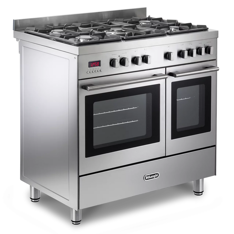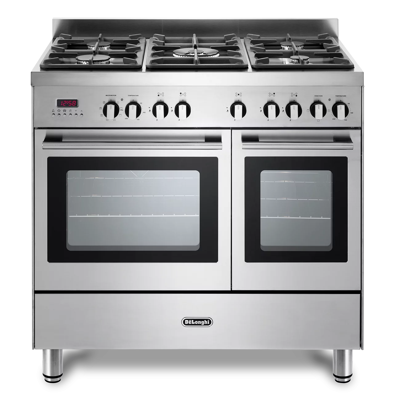 DeLonghi Modern 90cm Twin Cavity Dual Fuel Range Cooker DTR906DF Stainless Steel