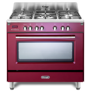 DeLonghi Vintage 90cm Single Cavity Dual Fuel Range Cooker DVRS916DFBU Burgundy