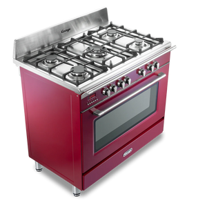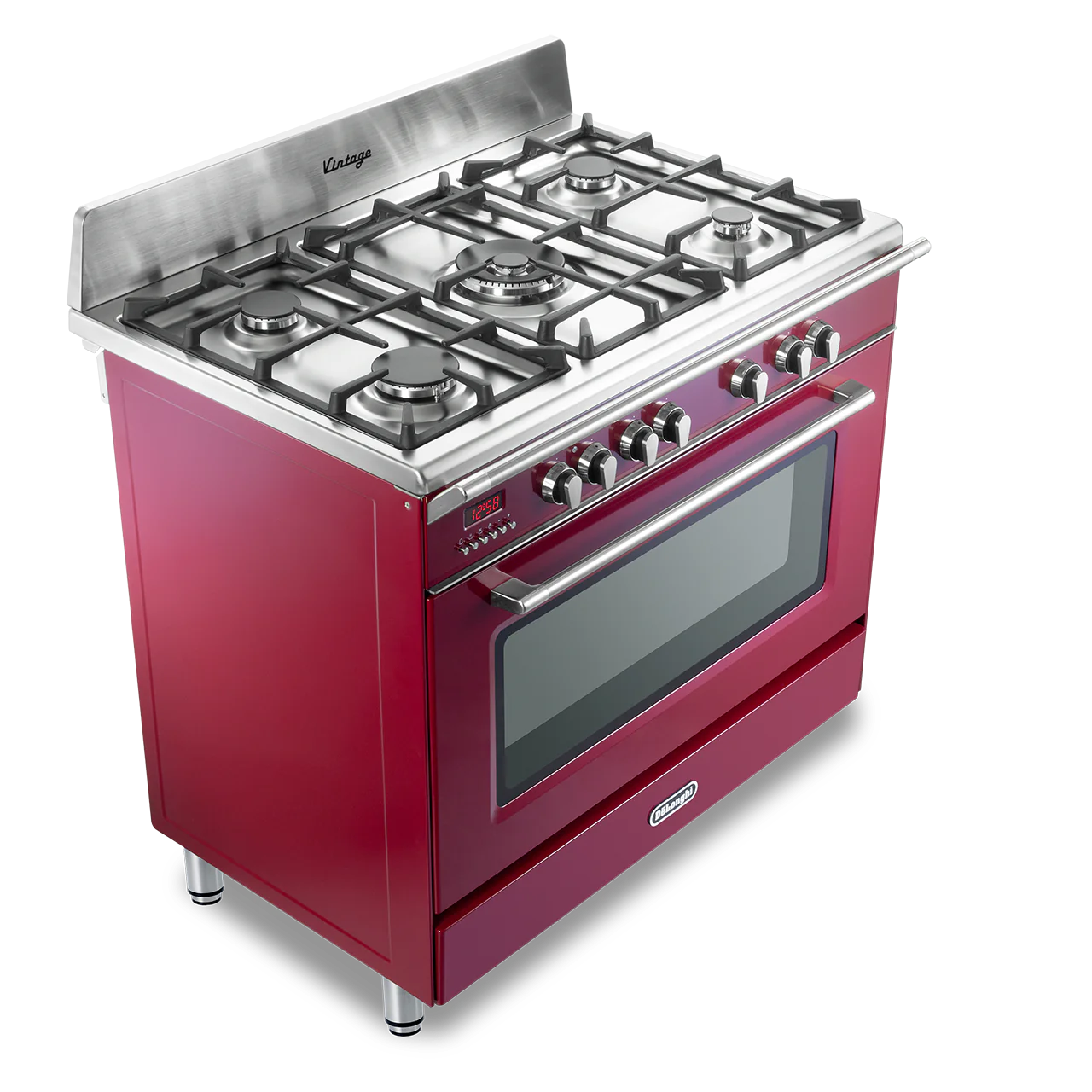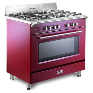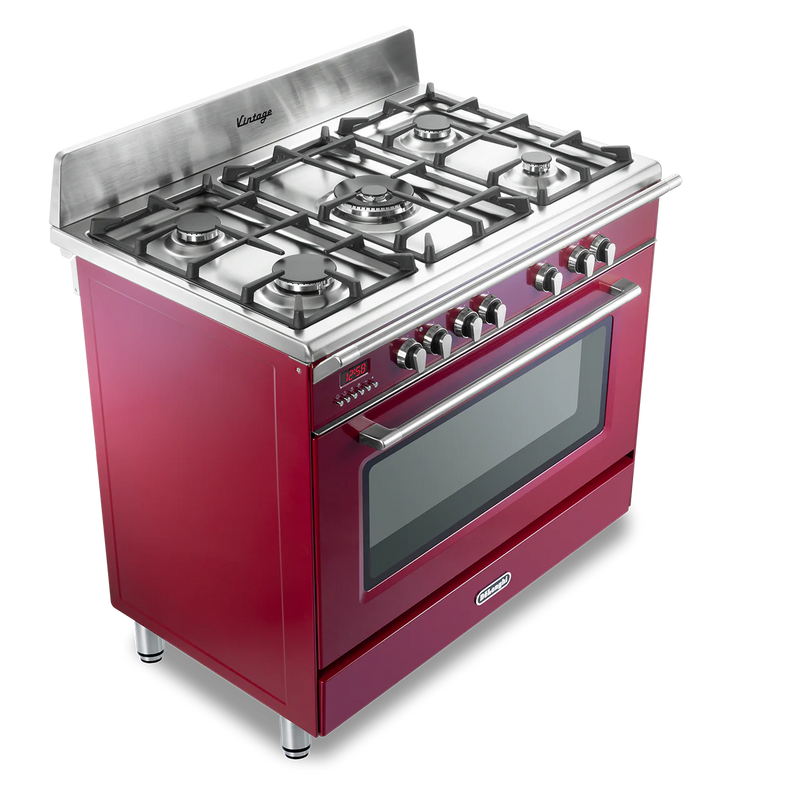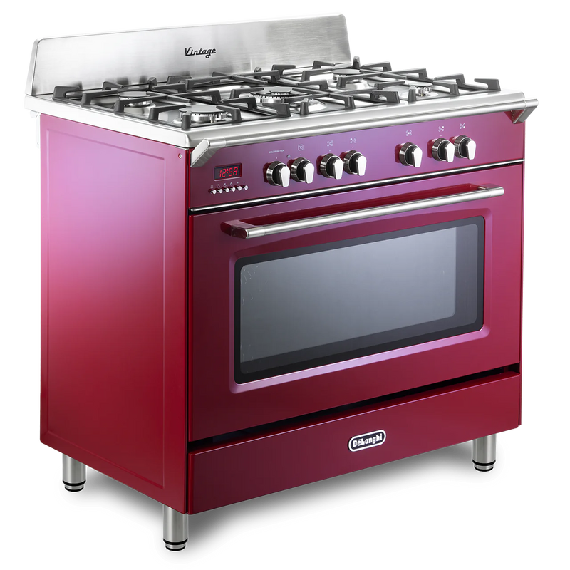 The DeLonghi Vintage 90cm Single Cavity Dual Fuel Range Cooker DVRS916DFBU Burgundy is the perfect addition to any modern kitchen. With its sleek and stylish design, this cooker will not only enhance the look of your kitchen, but also provide you with top-notch cooking performance.