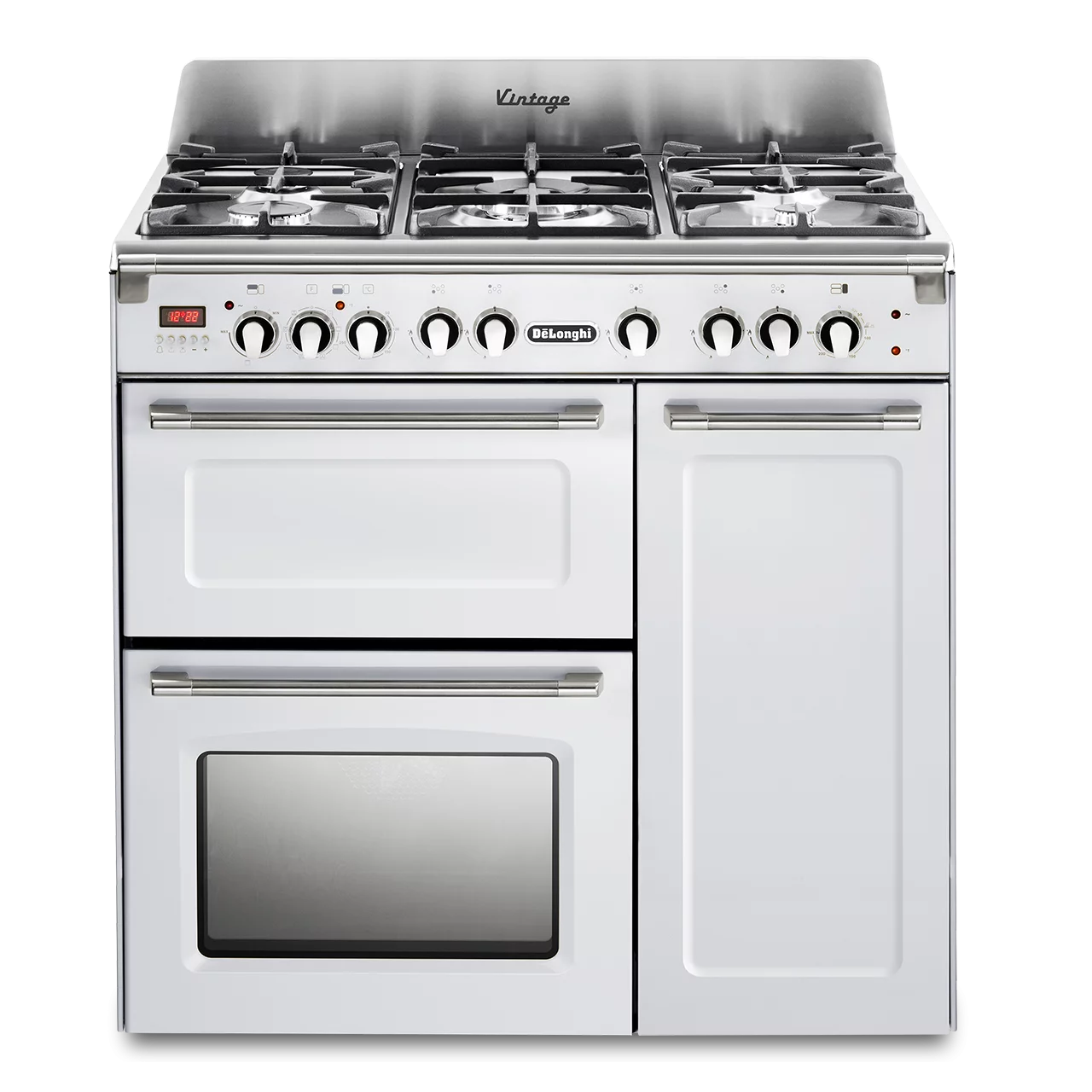DeLonghi Vintage 90cm Three Cavity Dual Fuel Range Cooker D3VR908DFWH Gloss White