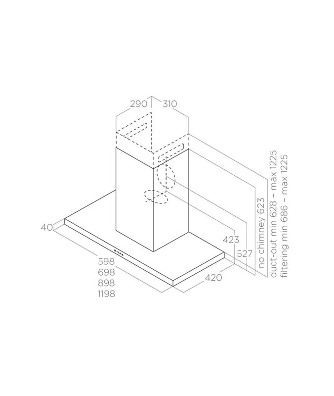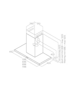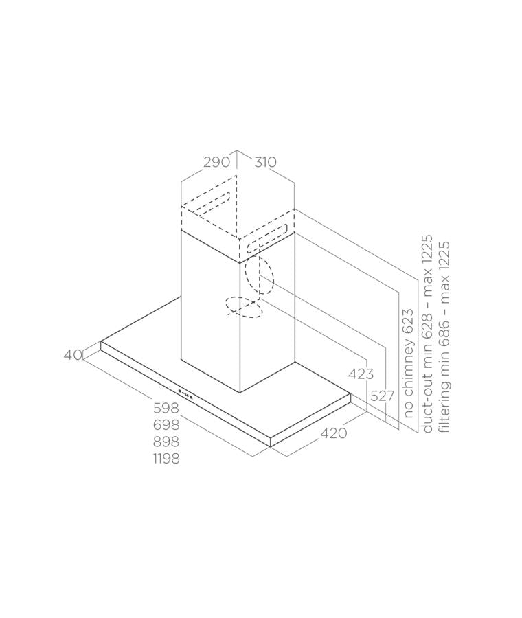 The Elica THIN-60 60cm Chimney Hood can be either recirculating or vented out outside and includes the aluminium grease filters for those who need it recirculating back into the kicthen. This slick chimney hood is only 42cm deep and designed for galley kitchens and low ceilings with an impressive max extraction rate of 385 m3/hr.