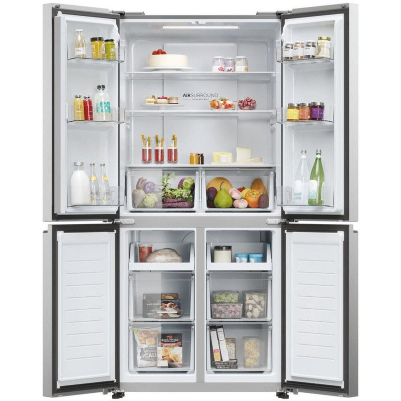 The Haier HCR3818ENMM American Fridge Freezer is a must-have appliance for any modern household. This sleek and spacious fridge freezer boasts a generous 467-litre capacity, providing ample room for all your family's groceries.