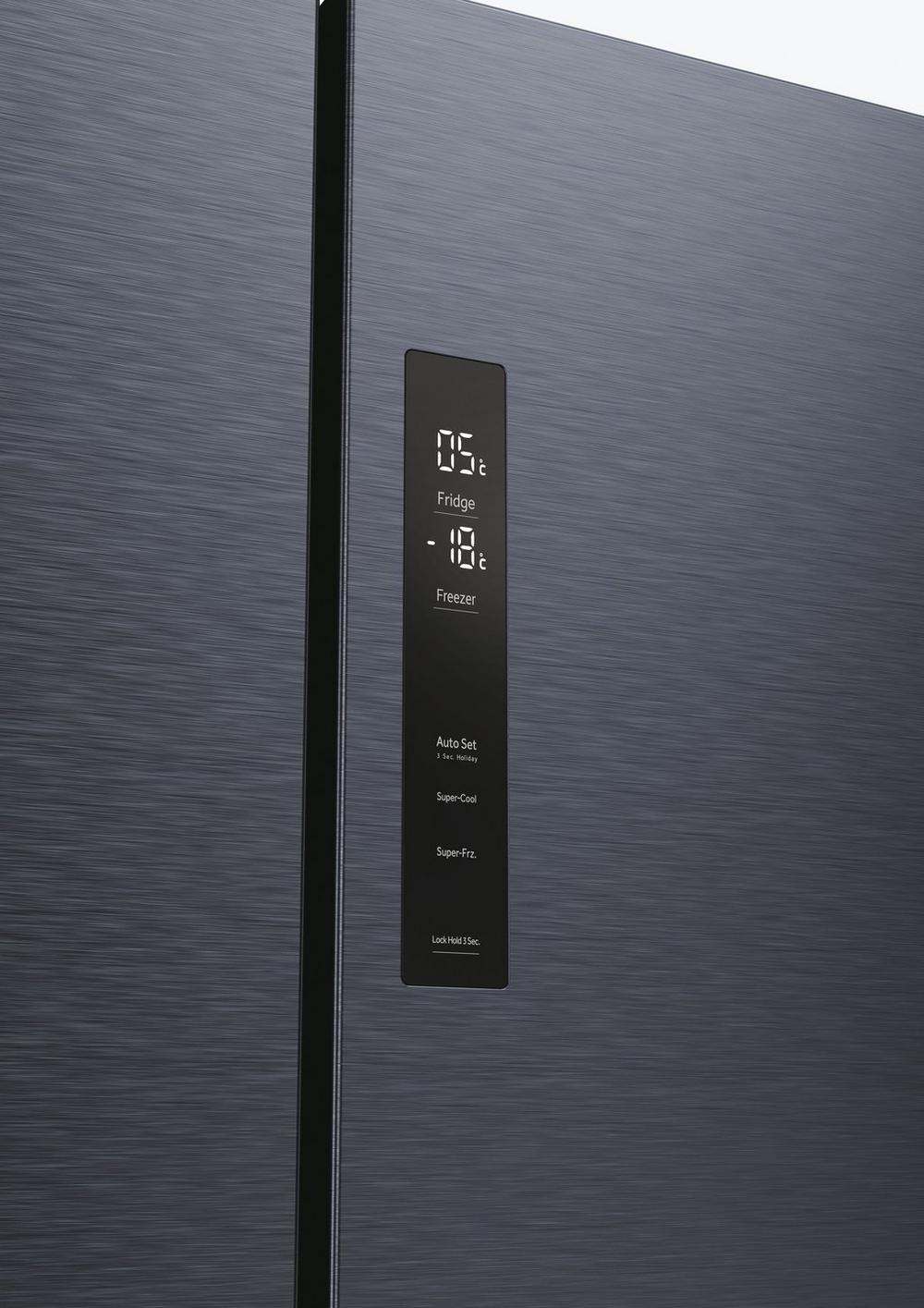 The Haier HCR5919EHMB American Fridge Freezer combines sleek design with advanced technology to keep your food fresh and organized. Its spacious interior with adjustable shelves and door bins maximizes storage space, while the innovative air circulation system maintains consistent temperatures.