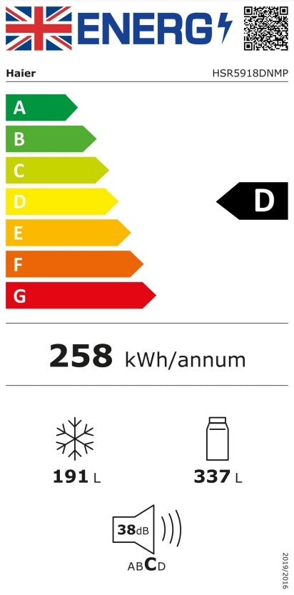 The Haier HSR5918DNMP American Fridge Freezer features a capacity of 528 litres and includes a 4-star freezer rating, ensuring reliable and efficient performance. Perfect for large households, the adjustable shelves and multiple compartments offer generous storage space with convenient organisation.