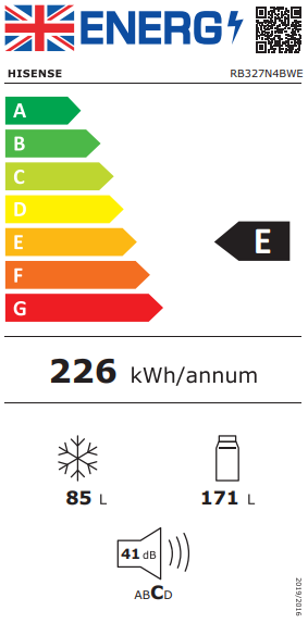 The Hisense RB327N4BWE freestanding fridge freezer is a Total No Frost model offering a net capacity of 171 litres in the fridge so you will have plenty of room to store the food your family loves, from meat and vegetables to juices and dairy products across four adjustable shelves, so you can make space for food of all shapes and sizes. The freezer has a further 85 litre capacity providing you with more than enough space for your frozen goods.