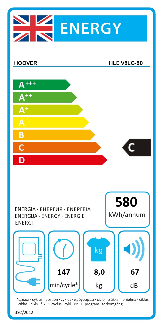 The Hoover HLEV8LG Vented Tumble Dryer is a great family sized appliance with a 9kg drum and sensor dry technology which senses the moisture inside the drum and automatically switches off once dried to your required level.