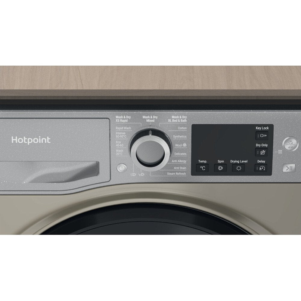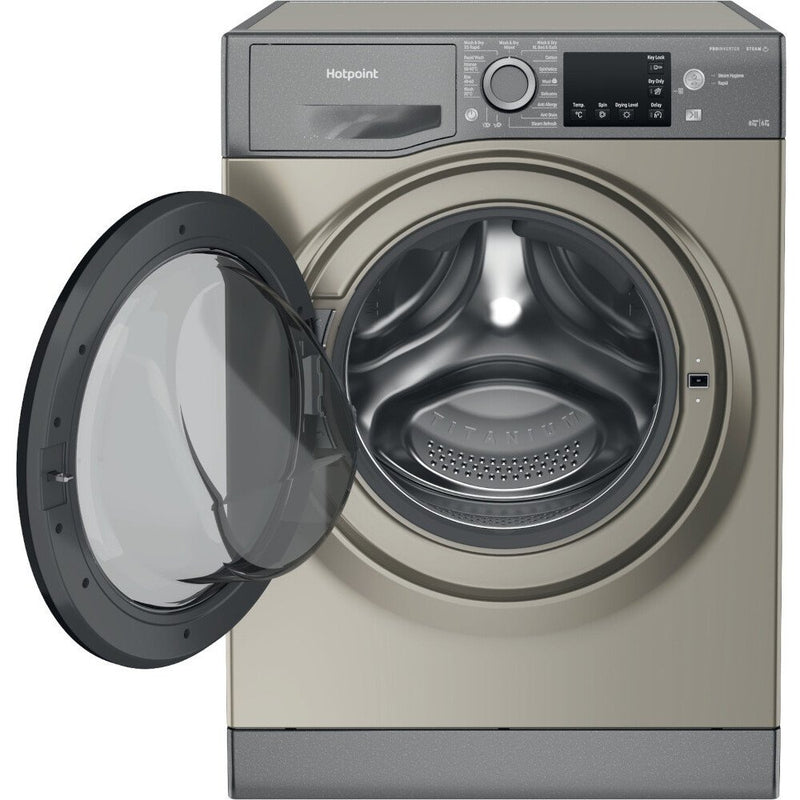 Simplify your laundry routine with the Hotpoint NDB 8635 GK Washer Dryer! This all-in-one appliance combines the power of a washer and dryer, saving you time and space.