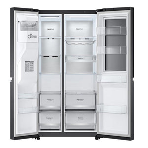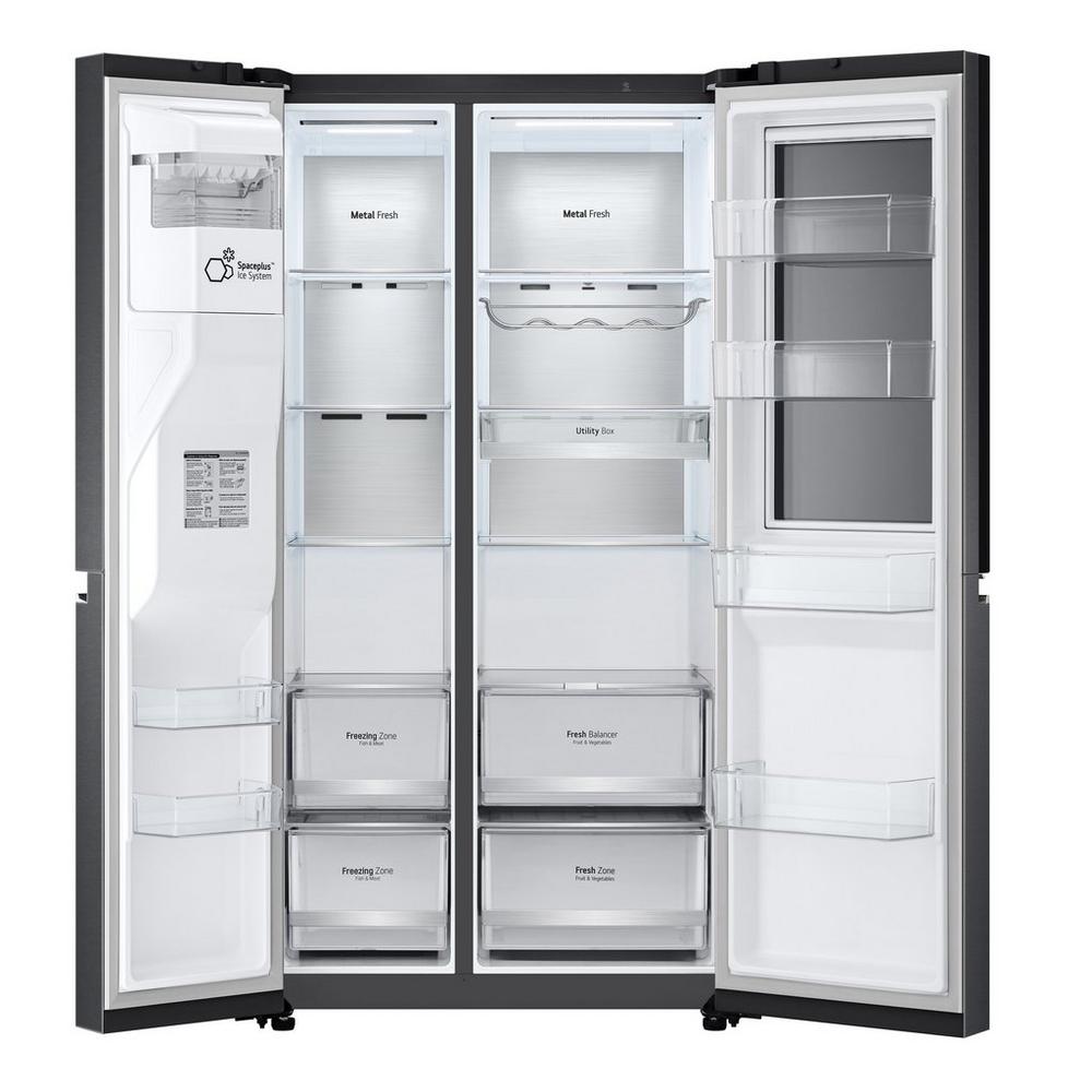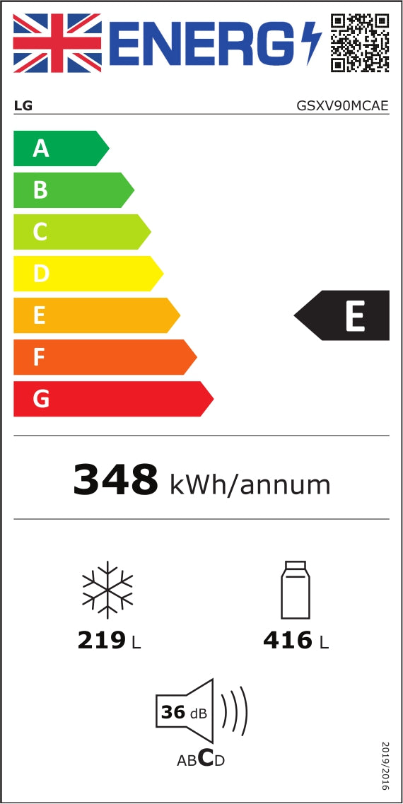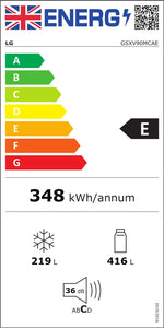 The LG GSXV90MCAE American Fridge Freezer gives you plenty of storage options thanks to the 416 litre fridge capacity spread over four safety glass shelves, four door balconies, and two salad bins spread, the freezer offers a further 219 litre capacity spread over two drawers, two door balconies, and four shelves.