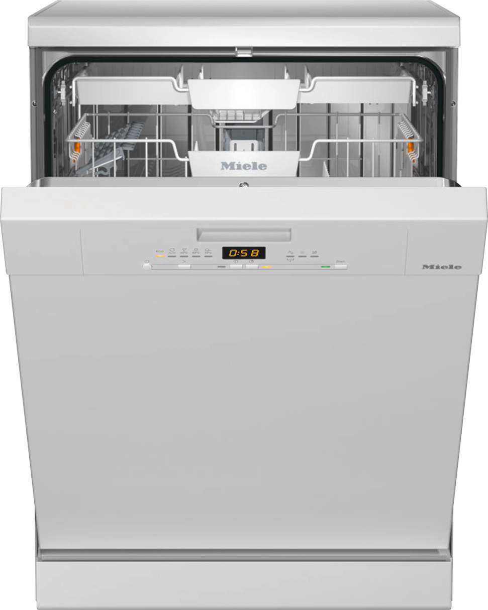 Experience superior cleanliness with the Miele G5110SC Freestanding Full Size Dishwasher. Featuring a powerful 8-program wash system, this state-of-the-art appliance effortlessly removes dirt, grease, and food debris with its temperature-controlled water, unique filter system, and adjustable racks.