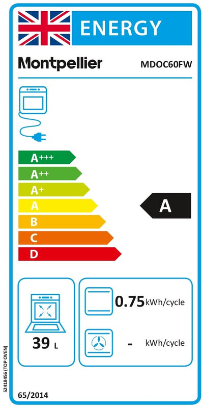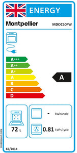 The Montpellier MDOC60FW Freestanding Electric Cooker in white is a 60cm wide double oven with grill and a four cooking zone ceramic hob with 6 heat levels and a hob hot warming light per zone.