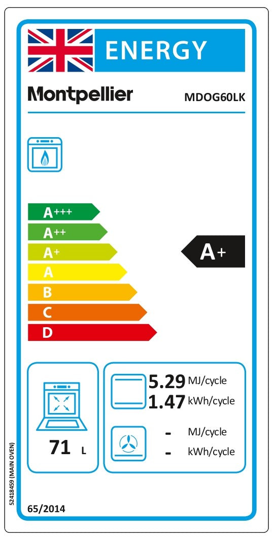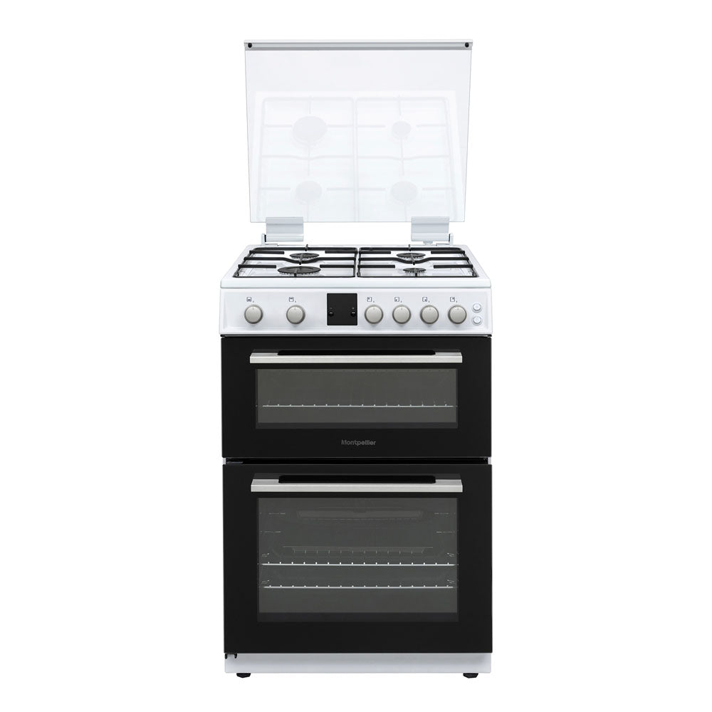 The Montpellier MDOG60LW Freestanding Gas Cooker is a 60cm wide double gas cooker with four cooking zones on the hob, two ovens and grill. The main gas conventional oven has a 71-litre capacity, providing plenty of space for cooking and the side opening door allows for easy access when adding or removing dishes and the top cavity is a 25-litre gas conventional oven and grill with an enamel interior for easy cleaning.