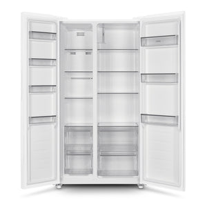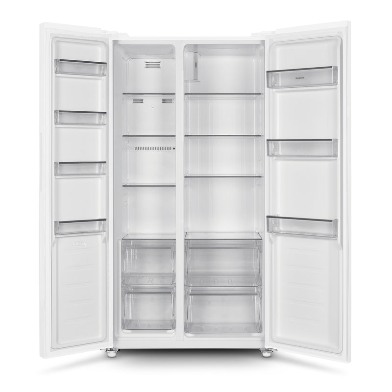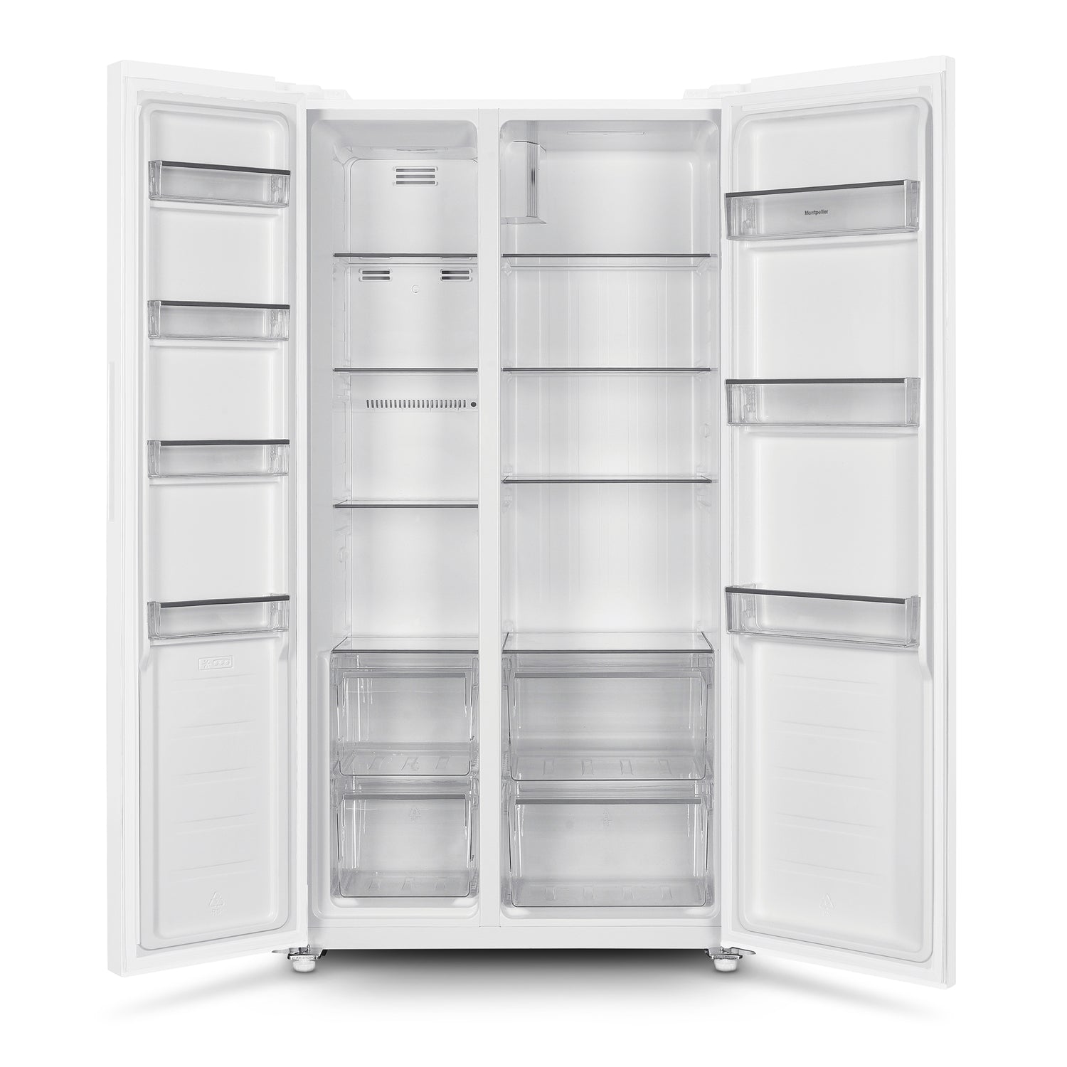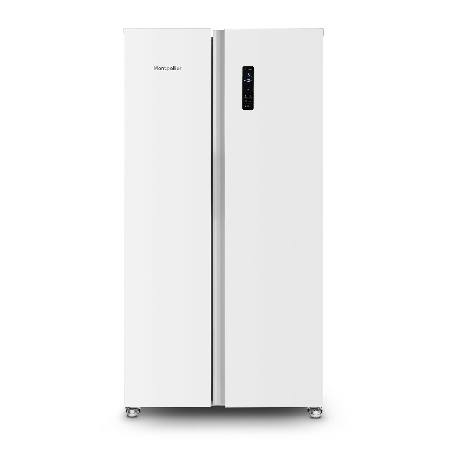 Stay organized and keep your food fresh with the Montpellier MSBS442X American Fridge Freezer in White. This efficient model features a large capacity of 442L, efficient performance, and adjustable shelving and temperature settings. Its sleek design will make a great addition to any kitchen.