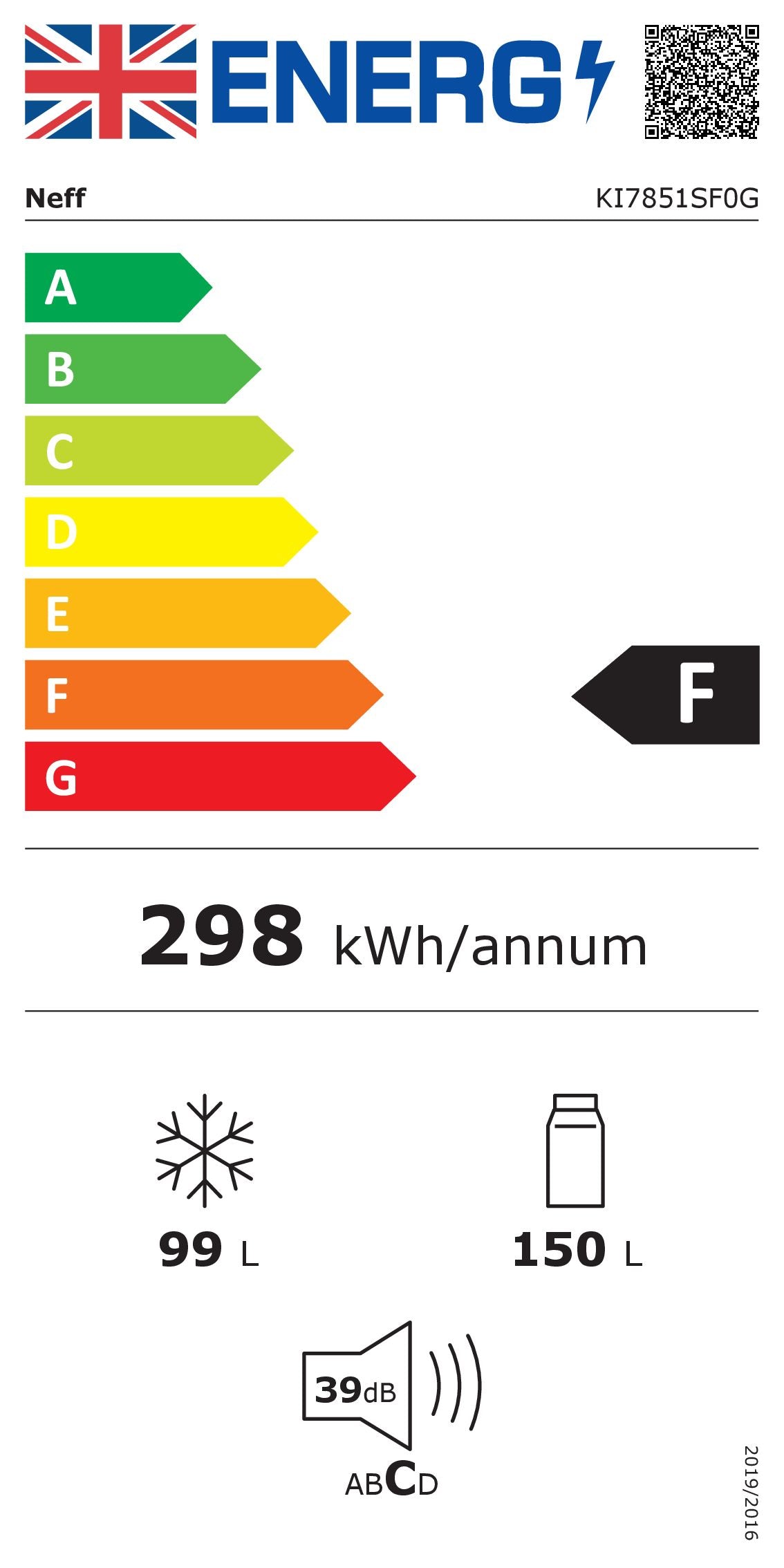 | Annual Energy Consumption | 298kWh |