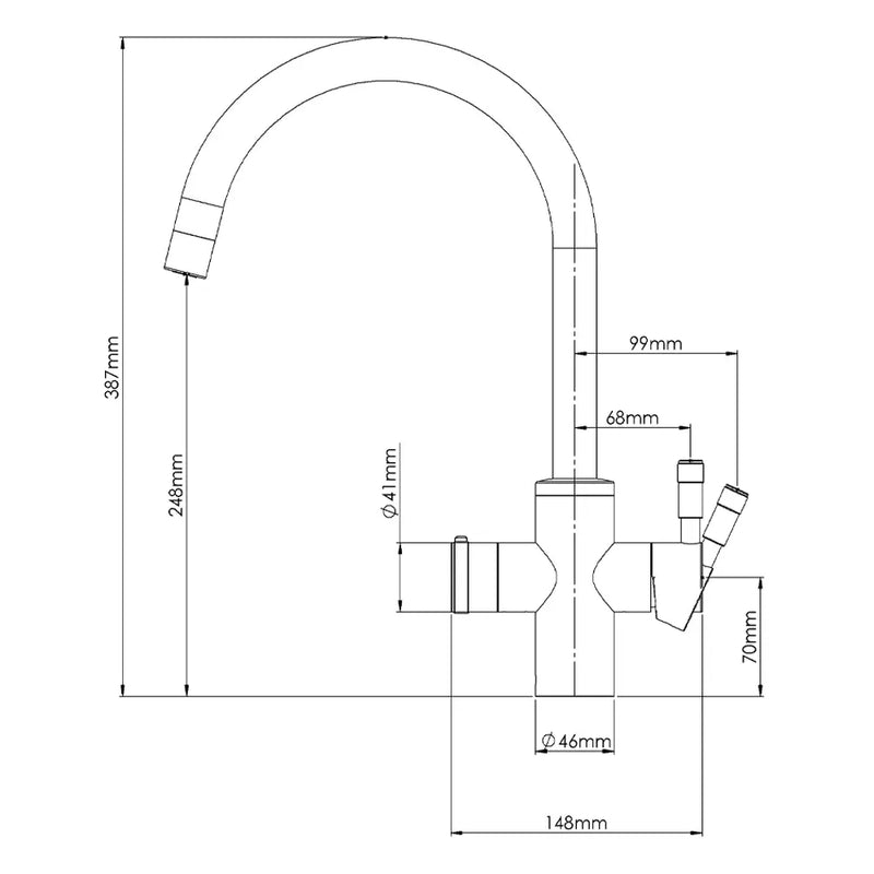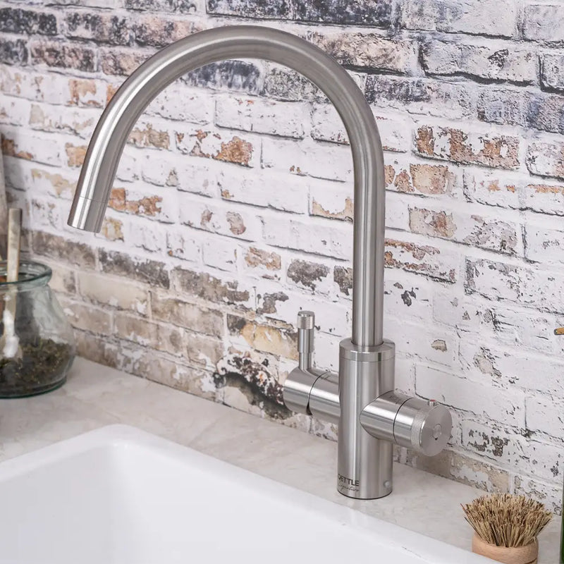 QETTLE Signature Modern taps are beautifully engineered from marine grade stainless steel in the UK. They dispense four flows - true, 100°C boiling water, filtered drinking water, plus normal hot and cold flows.