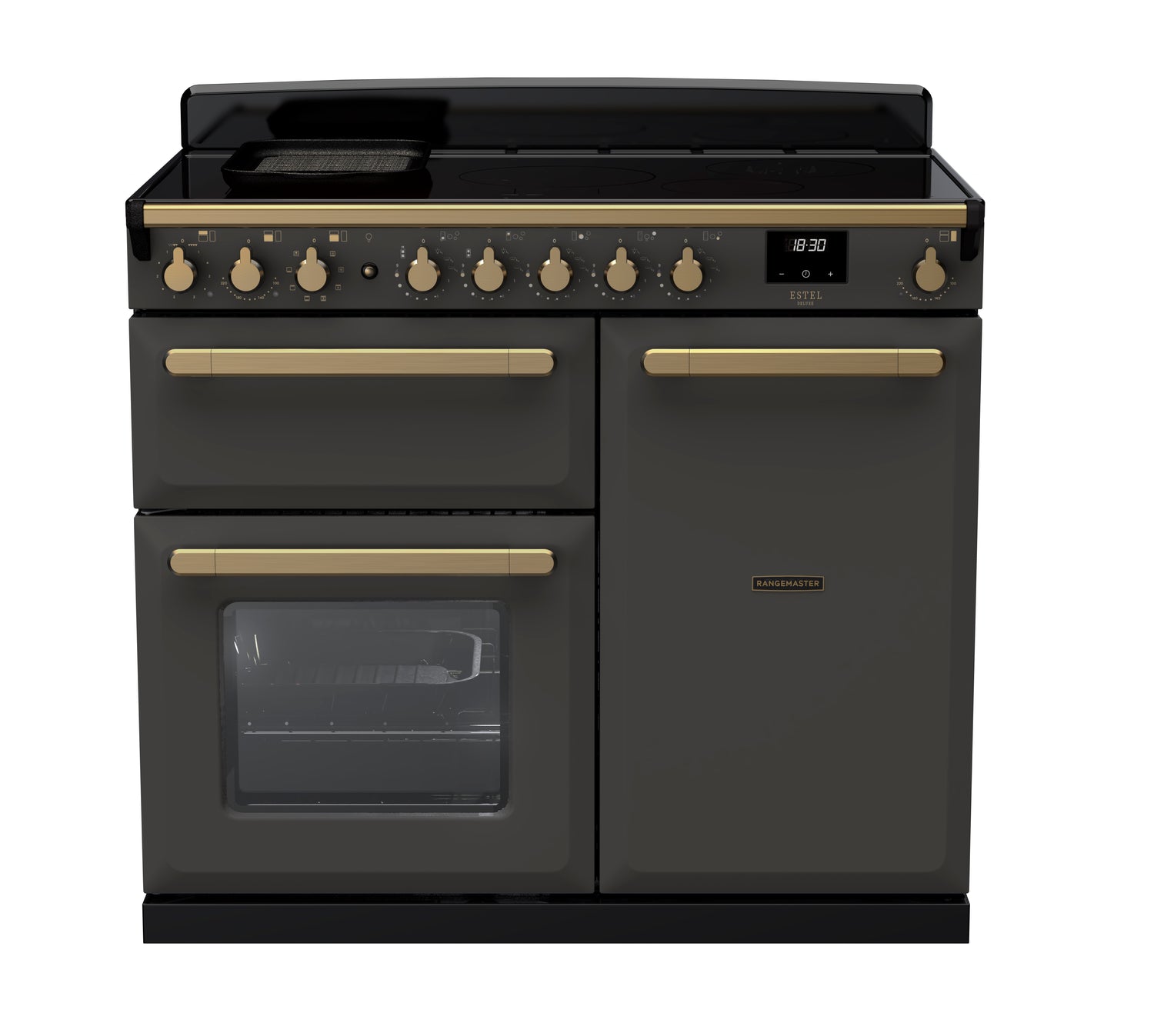 Rangemaster Estel Deluxe 100cm Induction Range Cooker ESDL100EIPSLT/AB1 Slate with Antique Brass Trim