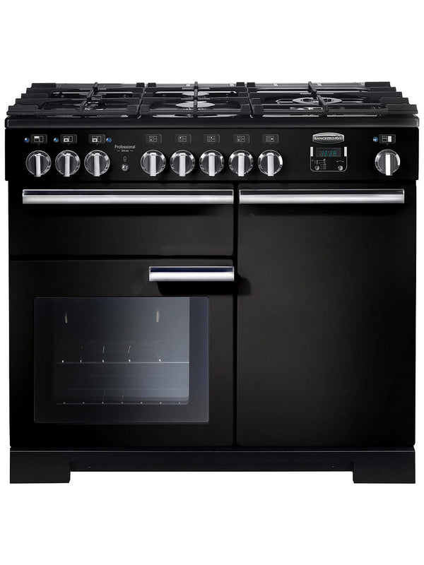 Rangemaster PDL100DFFGB/C Professional Deluxe 100cm Dual Fuel Range Cooker Black with Chrome