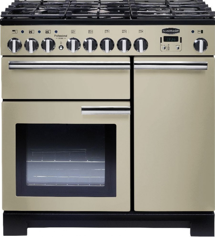 Rangemaster PDL90DFFCR/C Professional Deluxe 90cm Dual Fuel Range Cooker Cream with Chrome