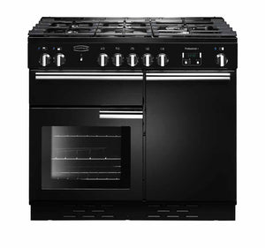 The Rangemaster Professional Plus 100cm Dual Fuel Range Cooker is for the serious cook, With an electric tall fanned oven and a plate warming rack, glide-out dual circuit variable grill and a handy rack that is attached to the main oven, and removable griddle.