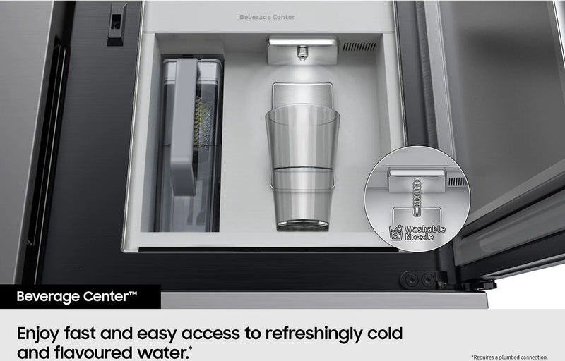 With its sleek design, advanced features, and spacious capacity, the Samsung Series 9 RF65DG960EB1EU Plumbed In Black American Fridge Freezer is the perfect choice for those who want the best in refrigeration technology. Upgrade your kitchen and elevate your cooling experience with this top-of-the-line appliance.