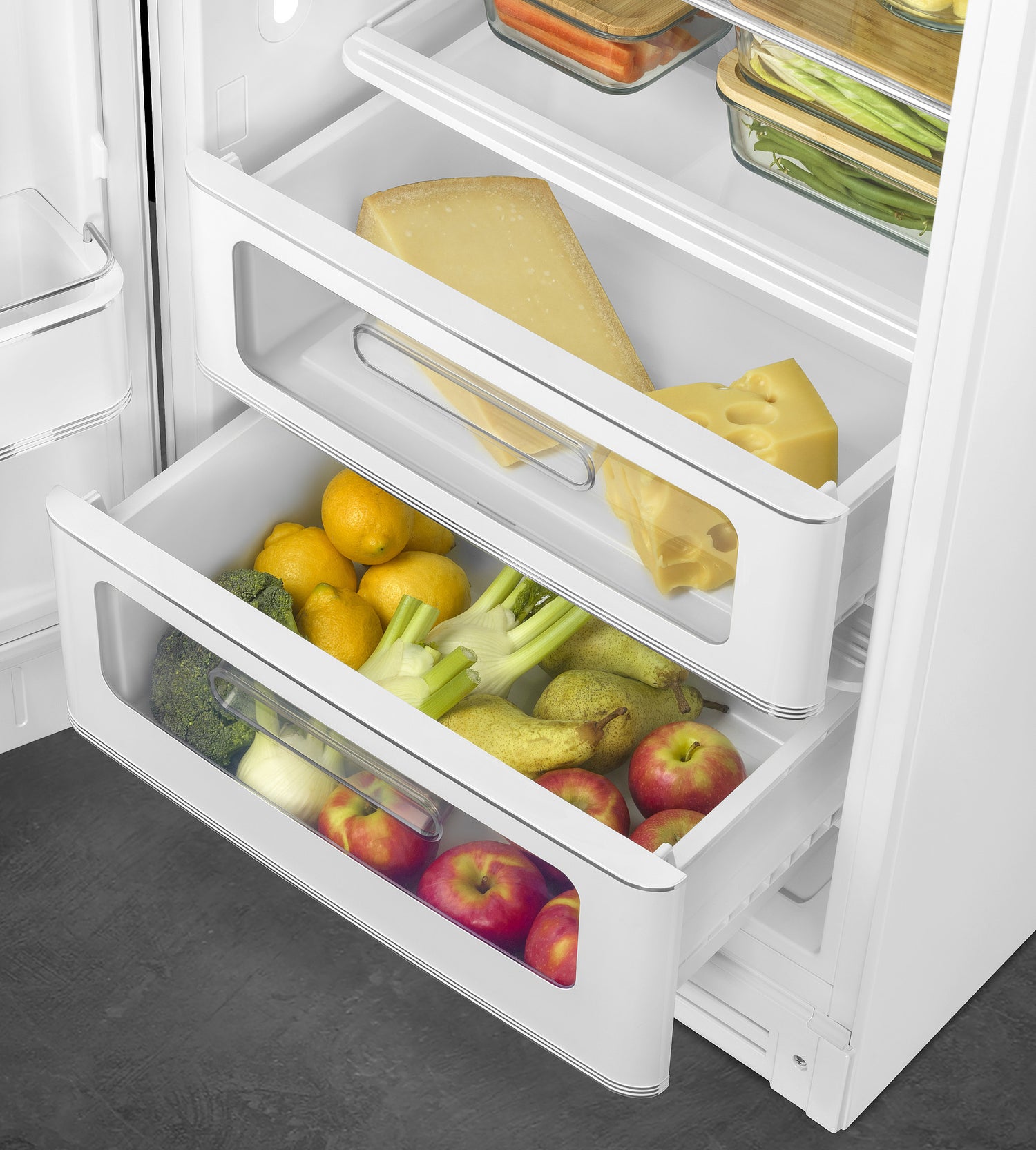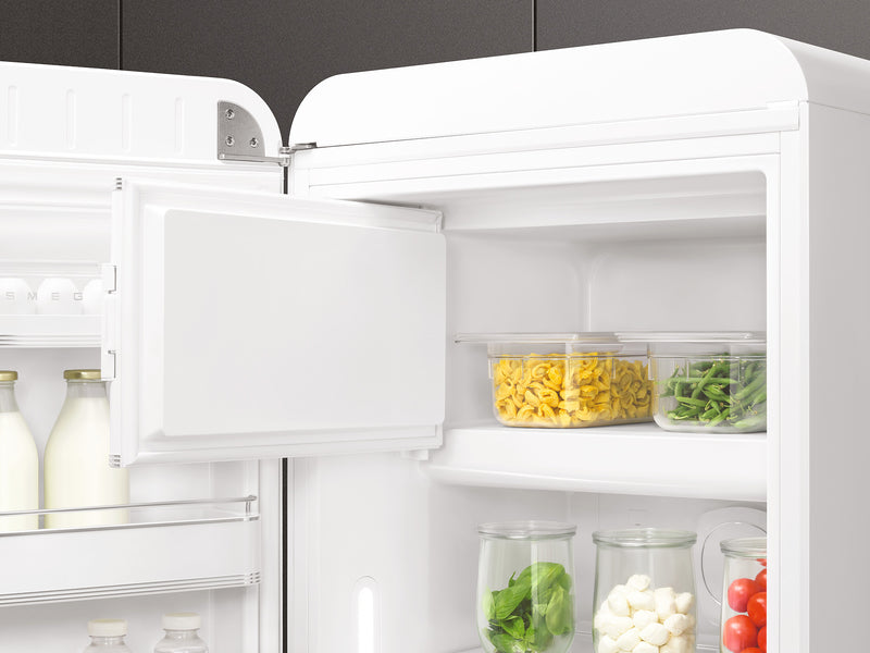 The Smeg FAB28LWH5 Retro Fridge is part of the iconic FAB28 coloured refrigerators which have become a cult object of style and creativity thanks to the rounded curves and chrome details that perfectly co-ordinate the interior and exterior door of the refrigerator.