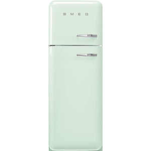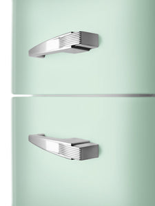 The Smeg FAB30LPG5 Retro Fridge Freezer in pastel green with a left hand hinge is part of the iconic FAB30 coloured fridge freezers which have become a cult object of style and creativity thanks to the rounded curves and chrome details that perfectly coordinate the interior and exterior doors of the fridge freezer.