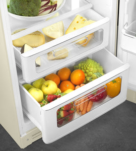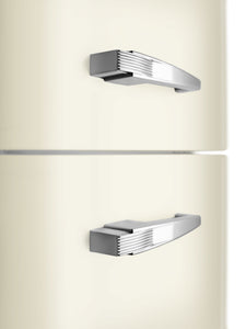 The Smeg FAB30RCR5 Retro Fridge Freezer in cream with a right hand hinge is part of the iconic FAB30 coloured fridge freezers which have become a cult object of style and creativity thanks to the rounded curves and chrome details that perfectly coordinate the interior and exterior doors of the fridge freezer.
