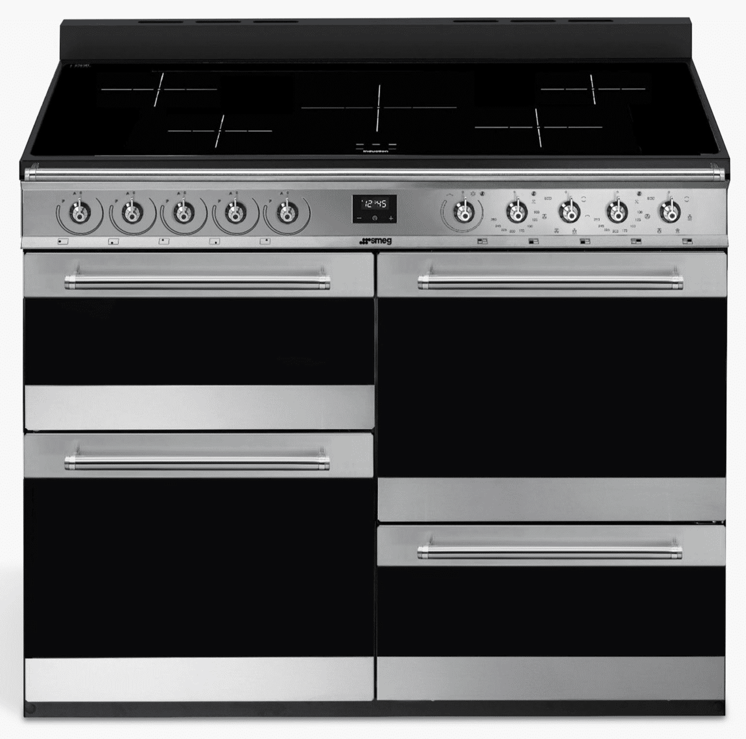 The Smeg Symphony 110cm Induction Range Cooker is contemporary and distinctive in design that offers two large ovens, separate grill and storage drawer.