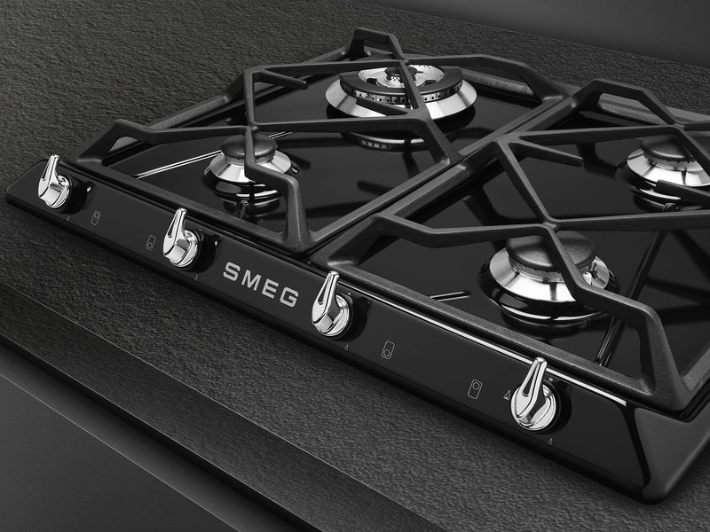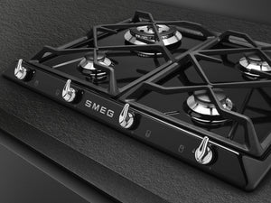 This stylish four-burner black hob is part of the Smeg Victoria Aesthetic range which combines a traditional design with contemporary features including an automatic electronic ignition and safety valves, which make gas cooking easier and safer. Also featuring a powerful 3.3kW burner that gives you fast heat, ideal for stir fries and searing meat.