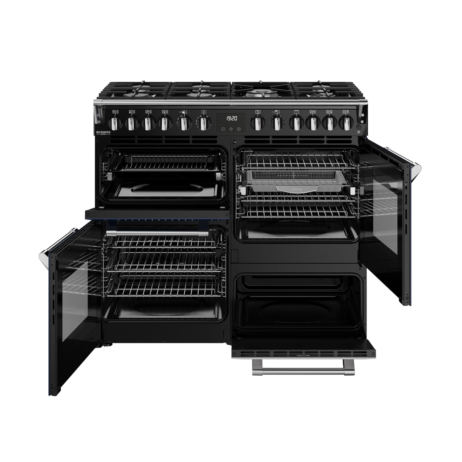 With four electric ovens, seven gas-powered burners and 196 litres of cooking capacity, this 100cm Richmond Deluxe has all the space you need for real culinary exploration. 13 distinct cooking functions (including Rapid Pre-Heat and AirFry with specially designed tray) open up new opportunities to experiment with flavour, techniques and ingredients. The varying size hob rings create space to use every pan in your collection – with a 4KW PowerWok™ option giving you a blast of intense heat when you need to turn up the temperature.