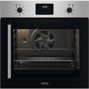 The Zanussi ZOCNX3XR Built In Electric Single Oven features a handy side opening allowing easier unrestricted access to the oven cavity. The fan oven allows you to cook on 3 levels at the same time to allow you to cook up a feat with ease.